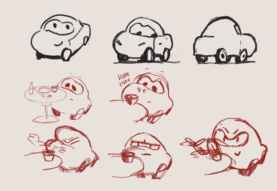В рамках майнора «Анимация» было задание создать персонажа и нарисовать различные ситуации с ним. Мой персонаж — милая машинка, вдохновленная мультфильмом «Тачки», снятый студией Pixar.