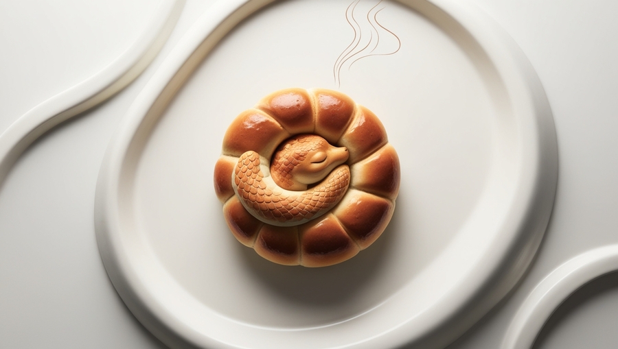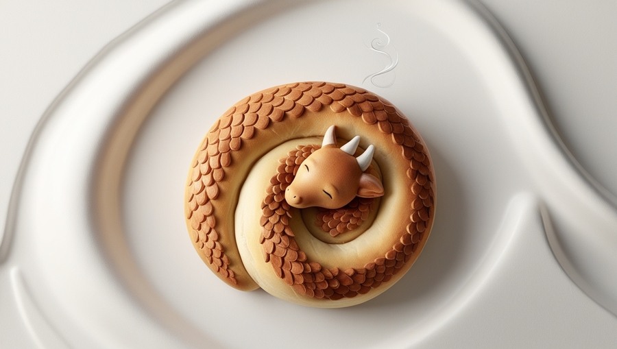 Промт булочки: a low-detailed, whimsical, sleeping dragon, curled up in the shape of a cinnamon bun, with a soft, rounded body, covered in a warm, golden brown scales, and a tiny snout, on a pure white background, with gentle, rounded curves and subtle creases, evoking a sense of comfort and coziness, with a few stray, wispy strands of steam rising from the top of the bun, suggesting a warm, fresh-baked treat.