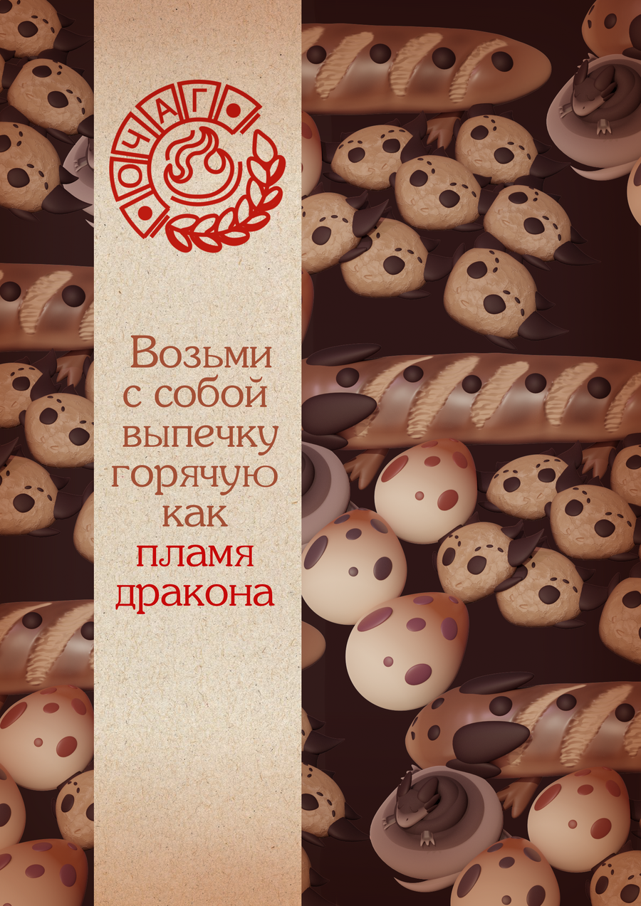 Проект «Очаг» — это бренд пекарен, специализирующийся на уникальной выпечке. Визитной карточкой бренда являются хлебобулочные изделия в форме драконов.