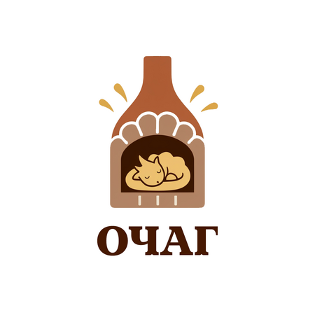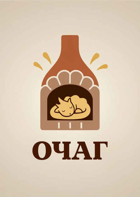 Промт лого: a whimsical, minimalist vector illustration of a sleeping dragon, cleverly designed in the shape of a cinnamon bun, cozily snuggled within the confines of a stylized stone oven, which serves as the centerpiece of the «Очаг» logo, surrounded by subtle, golden accents and warm, comforting tones that evoke a sense of tranquility and relaxation, with the dragon’s soft, rounded features and gentle snores adding to the peaceful atmosphere, its scales a soft, muted gold that blends harmoniously with the furnace’s rusty hue, while the text «Очаг» appears in a clean, modern sans-serif font above or alongside the furnace, in a contrasting bold font color that complements the overall design.