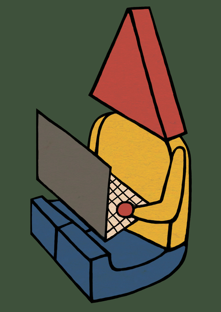 В буклете для направления «Современная иллюстрация» изображено здание, в котором человечки, студенты-иллюстраторы, погруженные в университетскую жизнь, ходят на лекции и увлеченно занимаются своими проектами. При создании иллюстраций я вдохновлялась эпохой конструктивизма.