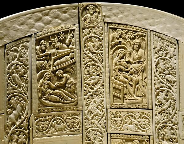Кафедра Максимиана, сделанная из слоновой кости в начале VI века, была местом для епископа и символизировала его власть в церкви и обществе.