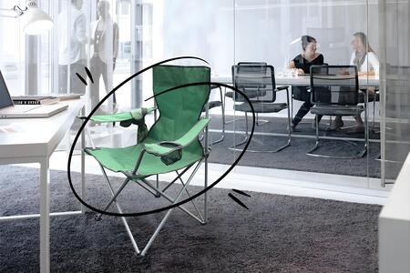 Складной походный стул совсем не подходит для офиса. У него нет регулировок и поддержки, поэтому сидеть на нем долго неудобно. Он легкий и не очень устойчивый, что делает его не самым надежным выбором для работы. Такой стул выглядит просто неуместно в офисе, создавая ощущение временности. В общем, походный стул — это не то, что нужно для комфортной работы.