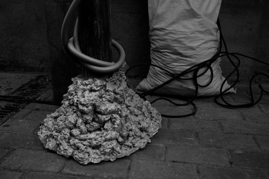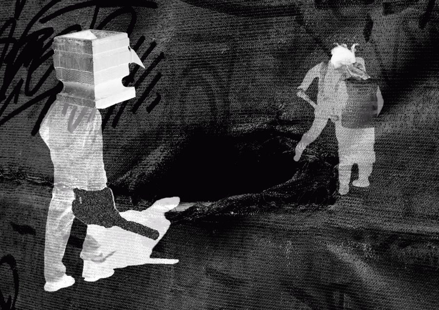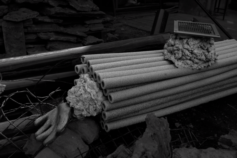 «Сегодня я как обычно пошел на стройку, нужно было убирать развалины снесенного дома. Вглядываясь в пустыню обломков, я выхватил что-то живое (по крайней мере мне так показалось). Это были известковые плиты, в которые впечатались человеческие черты. Они своими каменными ртами вежливо попросили меня их не трогать, так что пришлось уступить…»