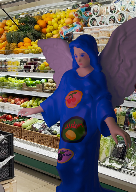 The story is motivated by the love of apples and the look of them at the supermarket. In this part of the video, the heroine begins to think about the nature of the road sign and wonders why it looks like this.