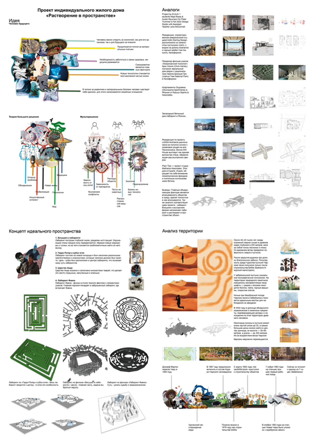 Здесь разработана концепция индивидуального жилого дома на тему «Растворение в пространстве». В проекте рассматривается человек будущего, его ценности и образ жизни.