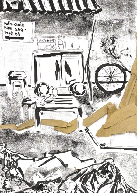 при помощи смешанной техники (трафаретная печать + крафт-бумага) я хотела поделиться своими наблюдениями и интерпретацией симбиоза природы и городской среды страны.