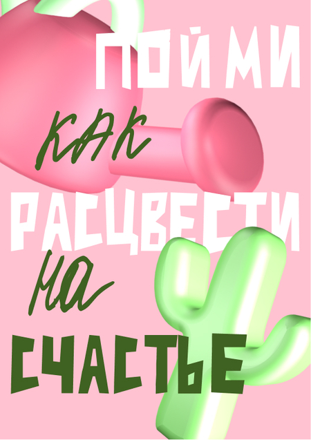КАК — это центр психологической помощи кактусов, который специализируется в избавлении растений от колючек и создании условий, в которых кактусы смогут расцвести. В своих плакатах я раскрыла то, что кактус может зацвести, благодаря опытным врачам.