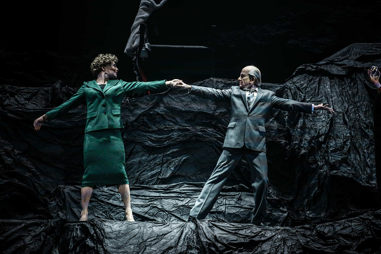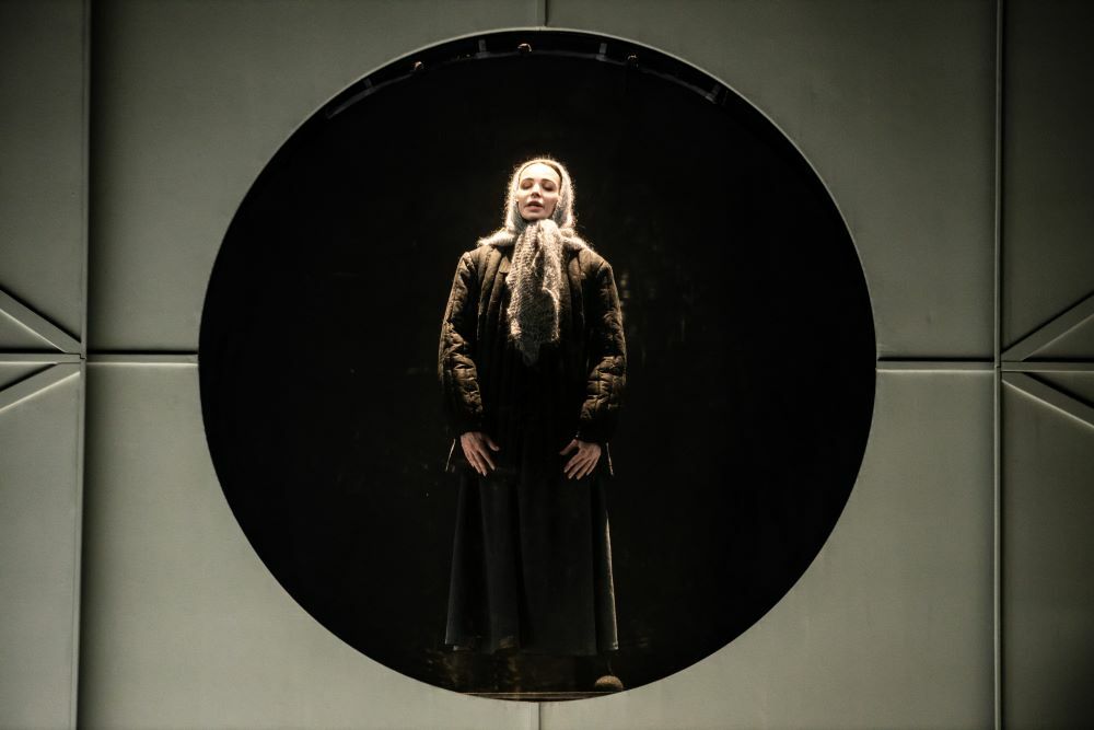 Сценограф чётко разделила два пространства — Россию и Англию — с помощью декораций. Масштабная, всеобъемлющая гора символизирует русскую землю, а серая, безликая стена олицетворяет «забугорье».