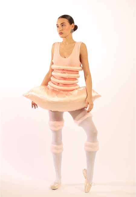 Балет традиционно воспринимается как воплощение красоты и эстетики, но за этим фасадом скрывается жестокая реальность балетной жизни. Балетные артисты сталкиваются с серьезными проблемами морального давления и хронических травм из-за интенсивных физических нагрузок. В своем проекте как метафору автор использует форму утяжелителей, которые танцоры надевают, чтобы усложнить и отягощить тренировки. Этот прием становится символом тяжести, которую ежедневно несут балетные артисты.