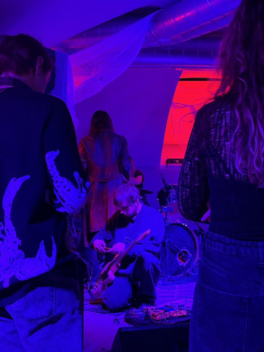 Мой проект — видеоарт с упором на звуковую составляющую, а не на картинку. Видео сняты на камеру iPhone 15 Pro Max на концертах в период с 2021 по 2025 год. Концептуально фильм поделен на три части, которые пытаются отразить прошлое, настоящее и будущее нашей инди-сцены, что отображается при помощи различной обработки звука и видеоряда.