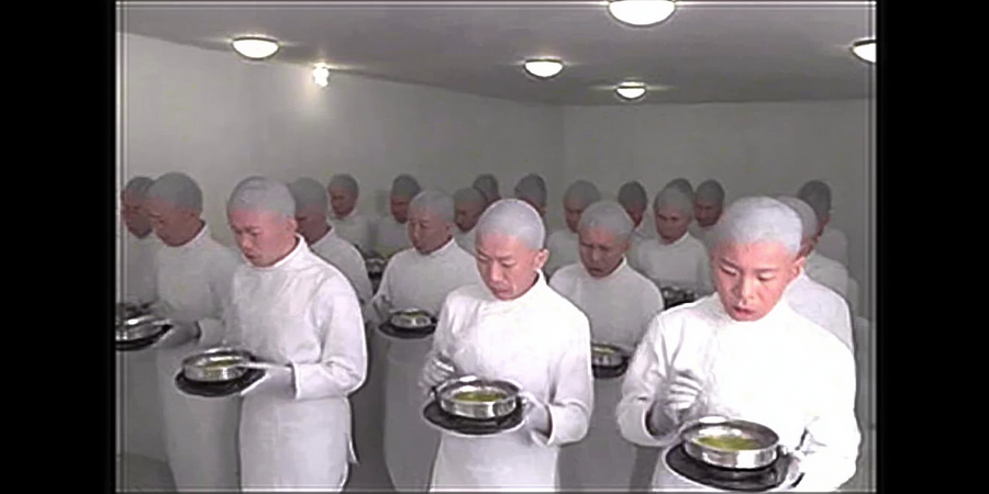 Питание было строгое. У каждого уровня — своё цветовое пюре: серо-жёлтое у охраны, насыщенно-зелёное у разработчиков, сиреневое у элиты. Всё на основе водорослей и белка насекомых. Ели стоя и молча.