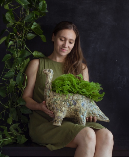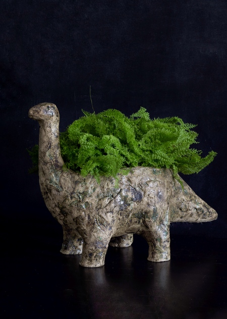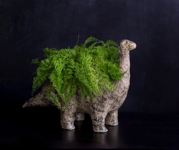 Каменный диплодок — слепленная вручную керамическая скульптура, внутри которой можно выращивать растения.