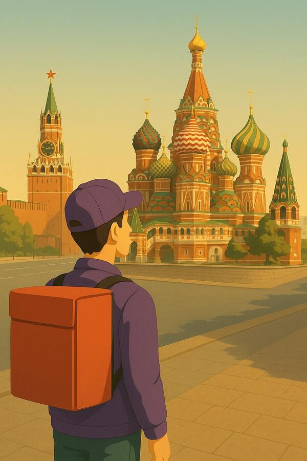Юмор и ирония. Смех над абсурдностью работы курьера и хаосом московской жизни.