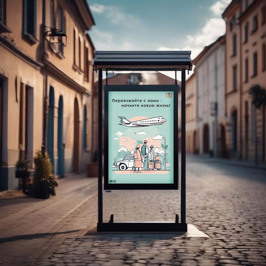 6. «Покорите новые горизонты с помощью MIG!» — иллюстрация с картой мира, на которой отмечены страны, в которые компания помогает переехать. 7. «Безопасность переезда — наш приоритет!» — изображение, на котором семья чувствует себя безопасно и комфортно в своем новом доме. 8. «Выберите свой идеальный дом с помощью MIG!» — плакат, который демонстрирует различные варианты жилья, доступные для переезда. 9. «Путешествие начинается с одного шага — сделайте его с MIG!» — изображение человека, который собирается сделать первый шаг в новую жизнь. 10. «Создайте свое идеальное пространство с помощью MIG!» — плакат с изображениями различных интерьеров, которые могут быть созданы с помощью услуг компании.