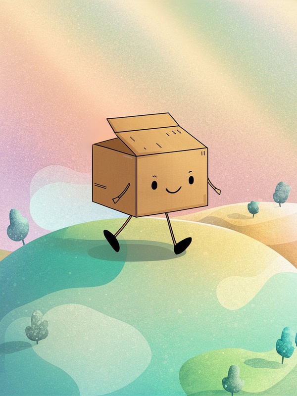 Изображение для обложки проекта также было сгенерировано нейросетью. prompt: a minimalistic illustration showing a cute smiling cardboard box with legs walking on a round planet, pastel colors