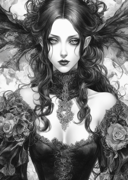 1. art in SAKAMOTO style, black and white, beautiful vampire girl 2. art in SAKAMOTO style, black and white, The Victorian era vampire woman with white hair 3. art in SAKAMOTO style, black and white, The Victorian era vampire woman