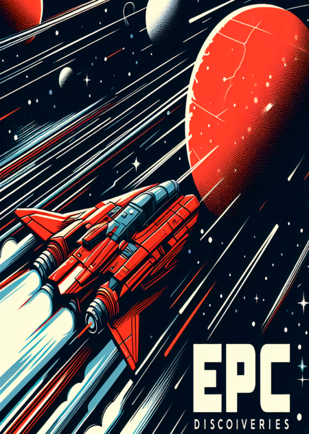 Типографика 1: minimalistic, simple, futuristic, vector document template and accessories for company named «Epic Discoveries» in red blue, dark purpule and white Типографика 2: minimalistic, simple, futuristic, vector document template and accessories for company named «Epic Discoveries» with red spaceship flying through a space coriolios rpg art style comic shading Брендбук: minimalistic, simple, futuristic, vector document template for company named «Epic Discoveries» with red spaceship flying through a space coriolios rpg art style comic shading on white background Постер 1 (с фургоном): minimalistic, simple, futuristic, vector, poster for company named «Epic Discoveries» with red spaceship flying through a space coriolios rpg art style comic shading located on a van on the street Постер 2: minimalistic, simple, futuristic, vector promote poster for company named «Epic Discoveries» with red spaceship flying through a space coriolios rpg art style comic shading on the wall Постер 3: minimalistic, simple, futuristic, vector promote poster for company named «Epic Discoveries» with red spaceship flying through a space coriolios rpg art style comic shading on the street.