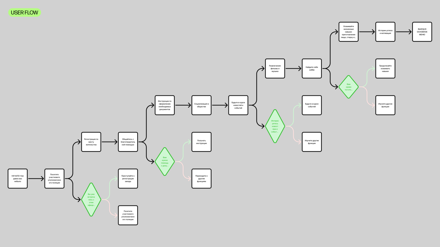 Направлен на помощь людям в интеграции в общество. Он включает функции, связанные с социальной адаптацией, пониманием бытовых вопросов, поддержкой со стороны волонтёров и социальных служб, а также с возможностью ознакомления со списком волонтёрских организаций.