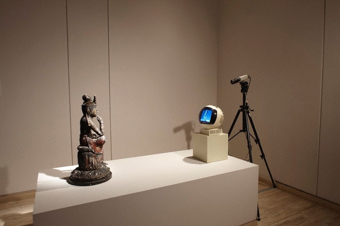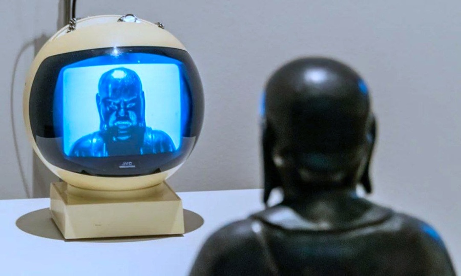 Пайк использовал буддийскую скульптуру как «экран» для проецирования современных образов, создавая провокационный диалог между традициями и современной жизнью.