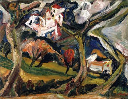 (1) «Монастырь капуцинов в Сере» (1920) Хаим Сутин, (2) «Платаны в Сере. Площадь Свободы» (1920) Хаим Сутин