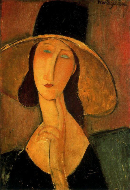 (1) «Портрет Жанны Эбютерн в большой шляпе» (1918) Амедео Модильяни, (2) «Портрет Жанны Эбютерн» (1919) Амедео Модильяни