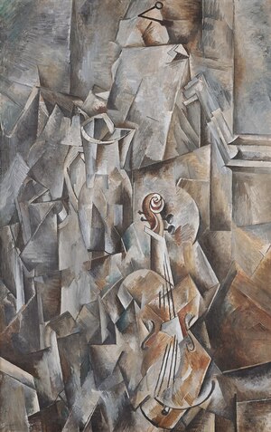 Брак, «Скрипка и кувшин» — это пример геометризации объектов. Брак использует кубистические элементы, чтобы представить музыкальные инструменты и предметы быта в абстрактной форме. Его натюрморт демонстрирует, как объекты могут быть раскладываемы на составляющие элементы, создавая новый визуальный язык. Геометрические формы и плоскости взаимодействуют друг с другом, создавая ощущение глубины и пространства.