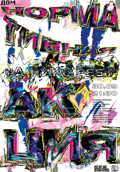 Плакаты, разработанные для фестиваля нА ПИКе Fest для культурного центра «Дом». Данные плакаты были созданы на основе шрифта и программируемой кисти.