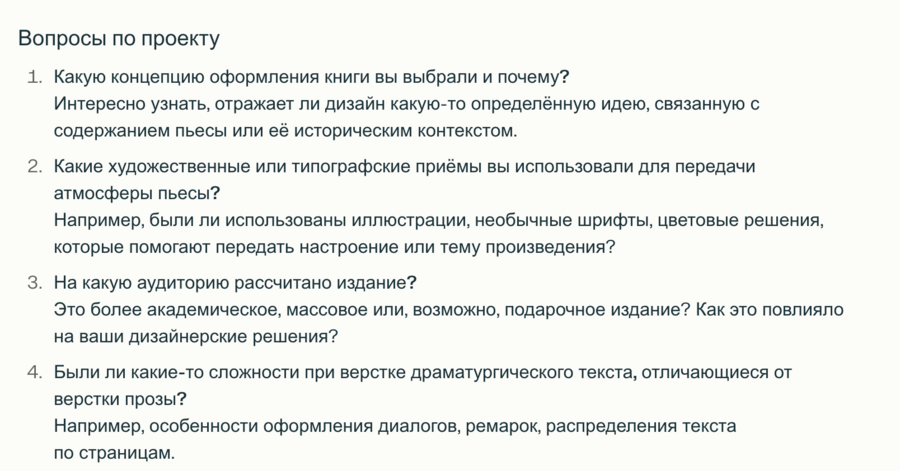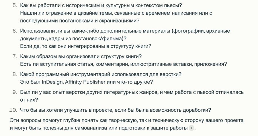 Первым шагом в работе было проведение интервью с Perplexity. Я отправила ссылку на свой проект и попросила нейросеть задать мне вопросы.