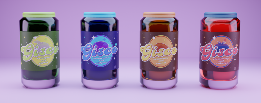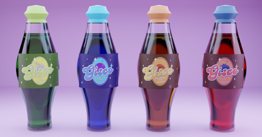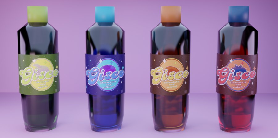 Promt: Create a vibrant and dynamic bottle image under the name «GISCO». The main focus should be on the brand’s signature carbonated energy drinks.
