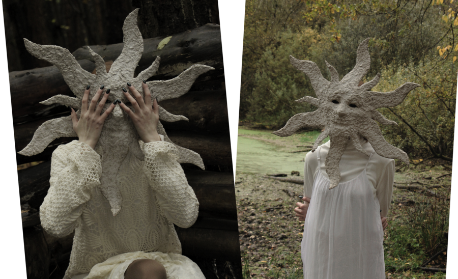 Концепция фотопроекта сосредоточена на визуальной интерпретации древнеславянского бога солнца Ярило, где центральное внимание уделено символизму солнечного божества, которое метафорически отражено в маске. В этой серии фотографий девушка, одетая в светлый кружевной наряд, в разных формах взаимодействует с фигурой солнца, выполненной из папье-маше, что отражает как мифическую силу Ярило, так и его связь с природными циклами. Лесная съемка создает ощущение мистической связи с древностью, окружение деревьев добавляет атмосферы изоляции, тишины и сакральности. Студийная съемка нацелена на интимность, детализированность и углубление в начатую тему.