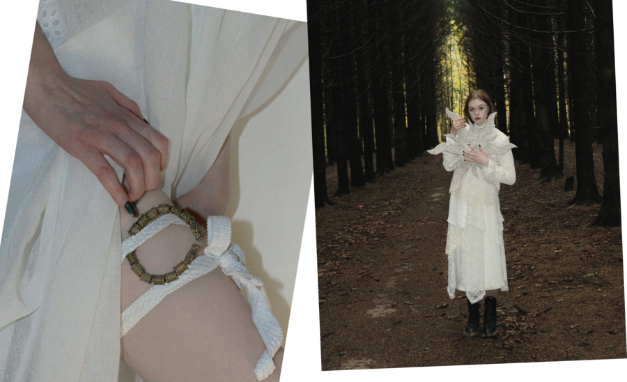 Лесная атмосфера подчеркивает связь Ярило с природой, а темный лес создает контраст со светлыми нежными элементами выбранного образа, что символизирует божественный свет, пробивающийся сквозь тьму и символизирующий возрождение. Сам лес в славянской мифологии нередко связывался с местом силы и переходом между мирами, что делает выбор локации оправданным и символичным.