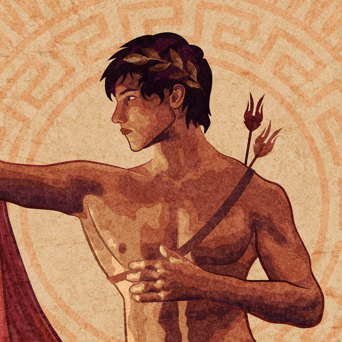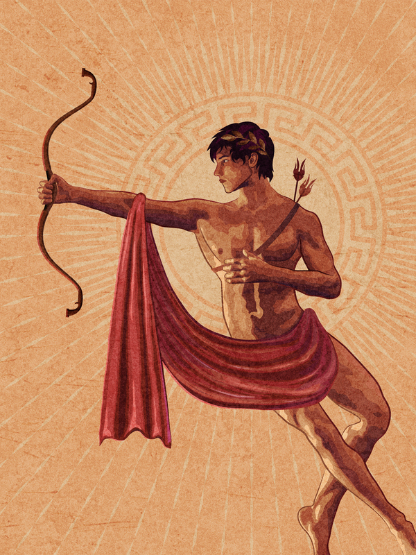 Аполлон с луком Векторный портрет юноши в образе греческого бога Аполлона с луком и стрелами