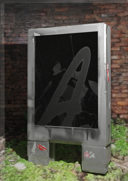 В рамках вариатива была поставлена задача: создать уникальную модель рекламного стенда. В результате работы была разработана одна модель, её UV развертка и пах из трёх вариантов текстур.