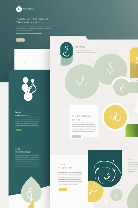 Концепты страниц сайта, созданные Leonarado ai по промпту Create a website design for a company that promotes mental health and self awareness. The website should be minimalistic and easy to navigate. invoking the feelings of hapiness, security and acceptance. The color scheme is dark green, light green, bright yellow and beige. No sharp edges, the shapes should be round and promote kindness.