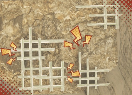 Прежде чем делать заплатки, дорогу нужно укрепить, собрав паззл из кусочков железной сетки.