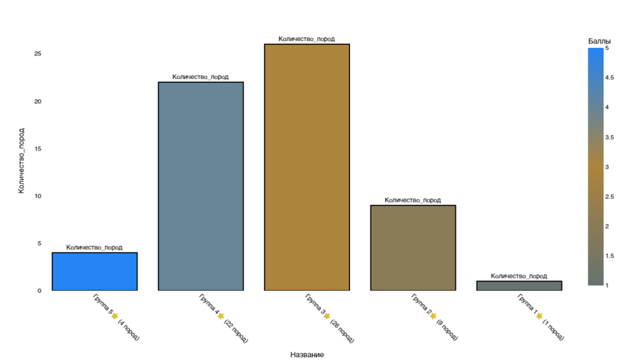 Во время анализа уровня комфорта породы в семье с детьми я использовала метод классификации и категоризации: