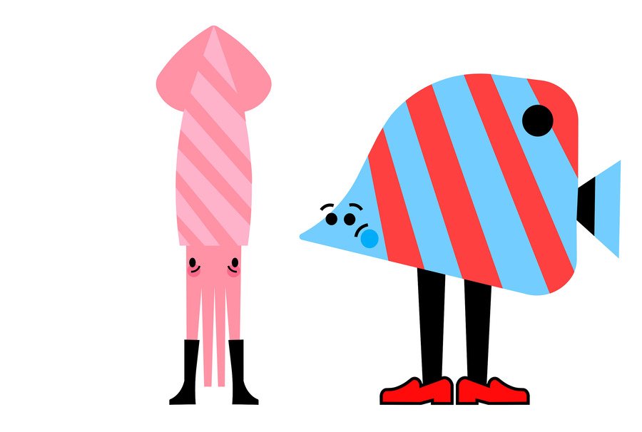Поскольку Севкабель распожен вблизи Финского залива, было решено отразить контекст места посредством изображения «шагающих» рыб.