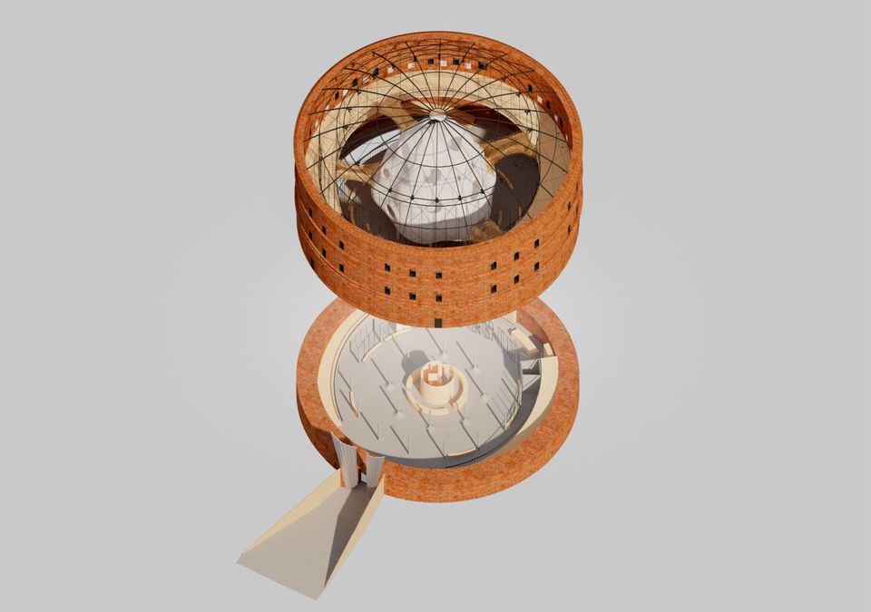 Проект представляет собой альбом с визуализациями интерьера внутри музейного пространства. Зона основной экспозиции вдохновлена коммунальными гнездами ткачиков и представляет собой подобие птичьего гнезда. Мотив гнезда является главным в концепции пространства всего музея.