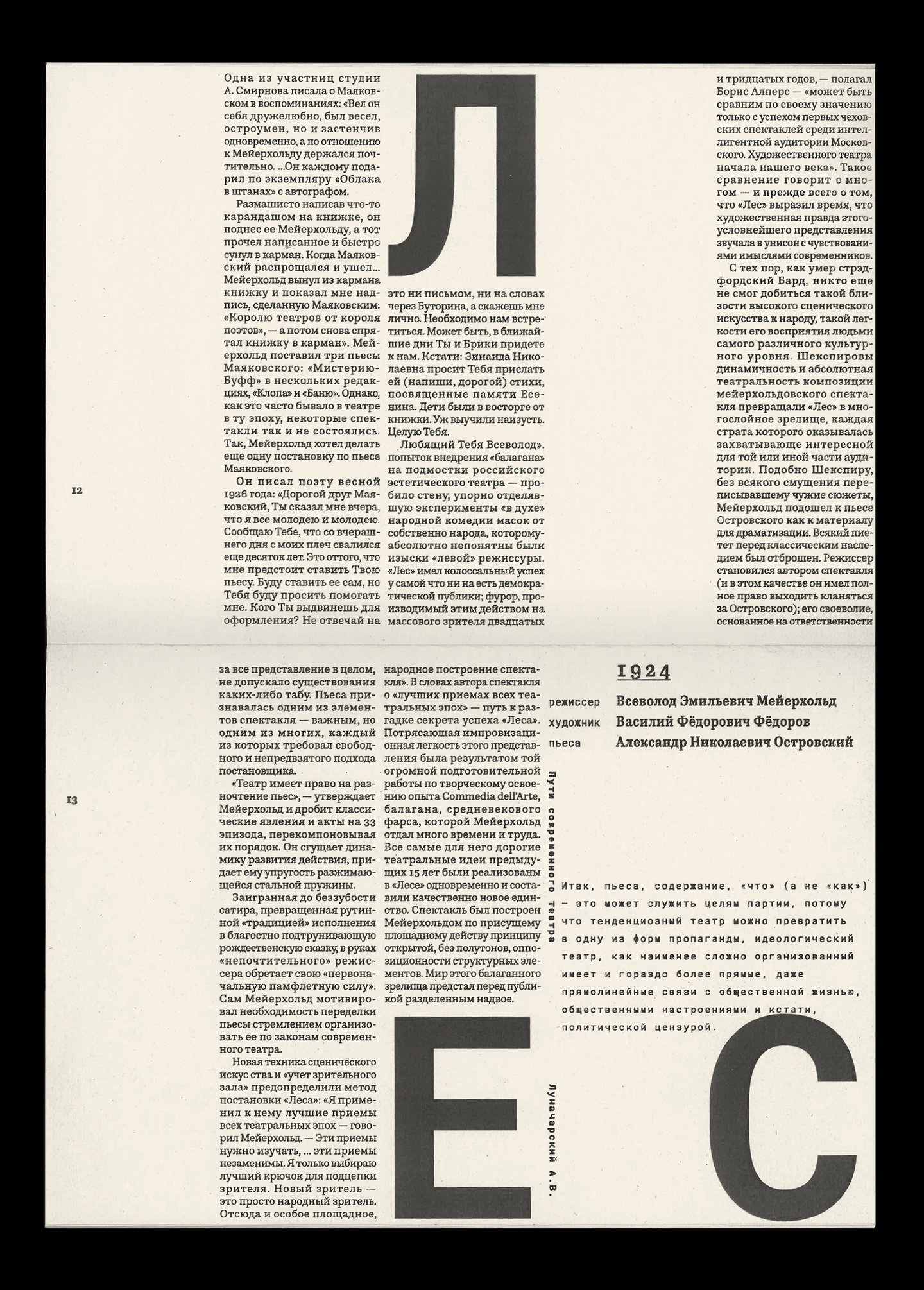 Zin of All Volody Meyerhold, including the main works he delivered at the State Theatre. Zin has a two-part structure: biography and performances. Inside the biography section are nine productions directed by Meyerhold. One turn is one piece.