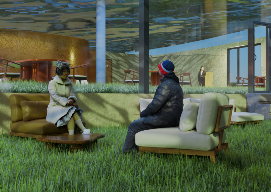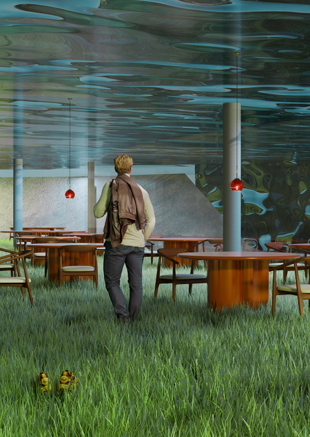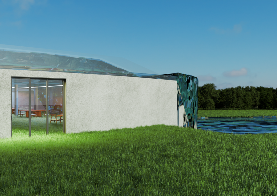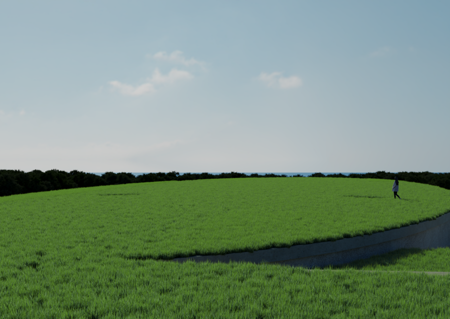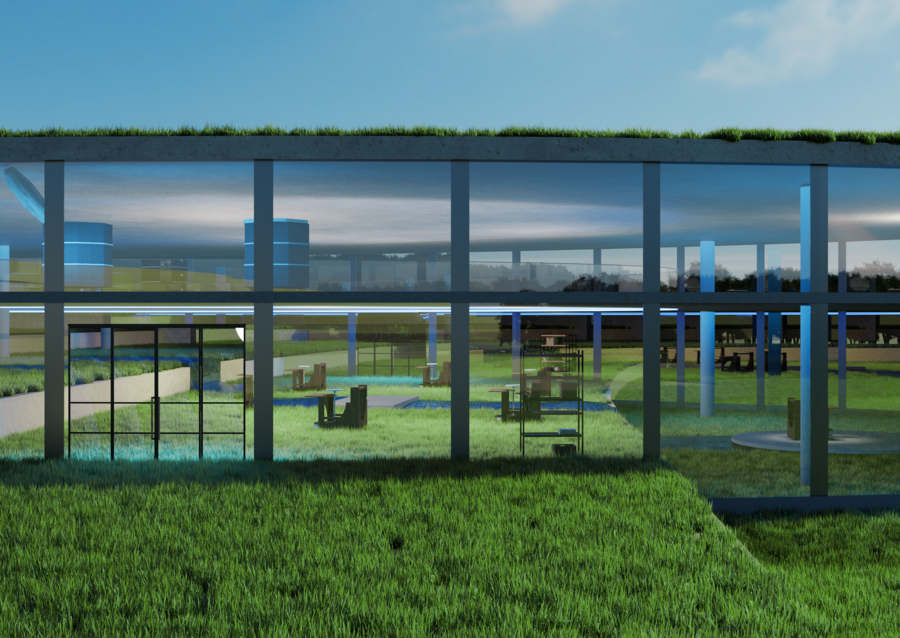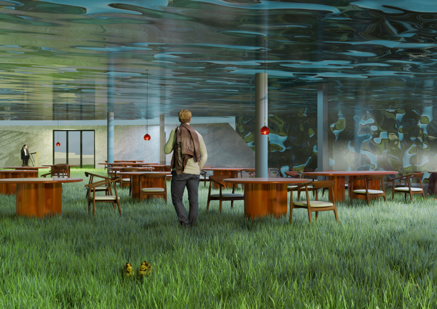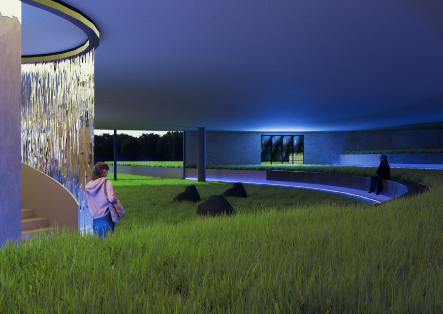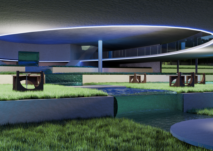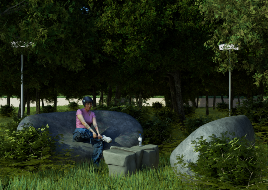 Я решила поиграть с вниманием человека к окружающему миру. Архитектура парка встроена в рельеф: человек может идти по траве и не заметить, что уже оказался на крыше здания. Ландшафт проходит сквозь архитектуру: через здания проходят ручьи, по крышам текут реки.