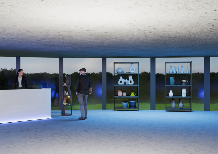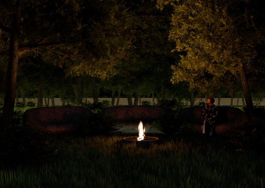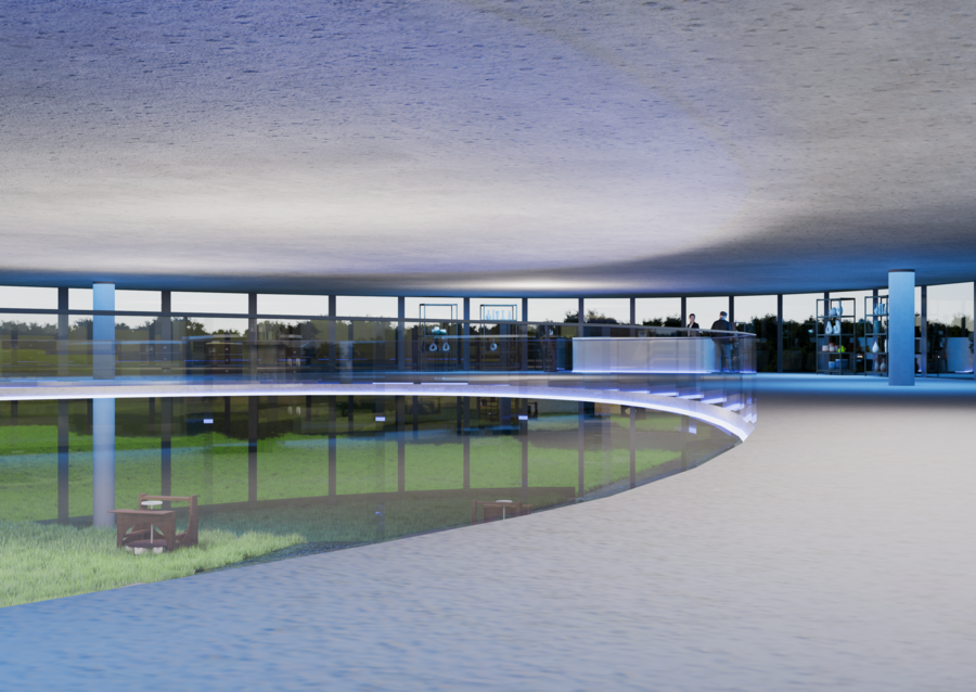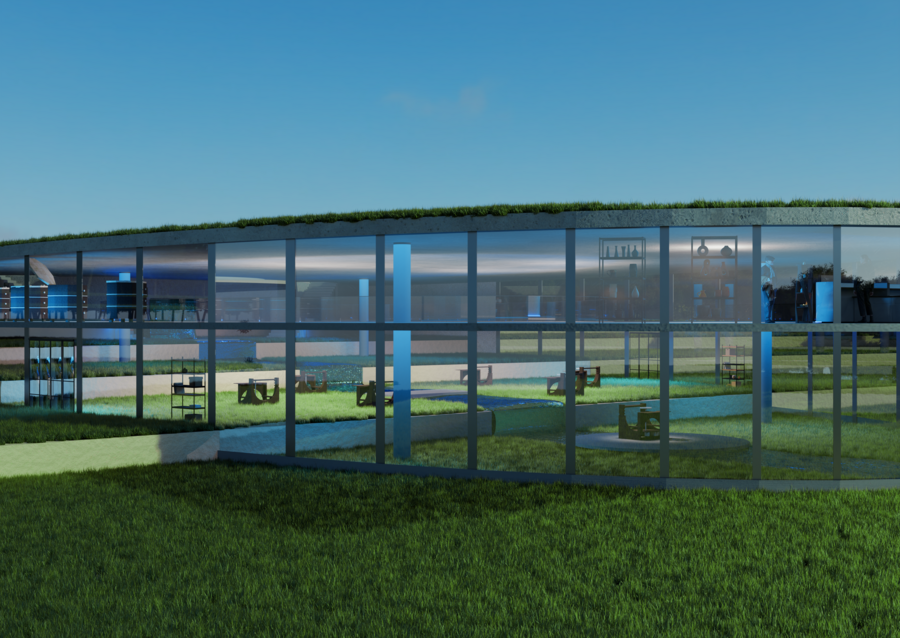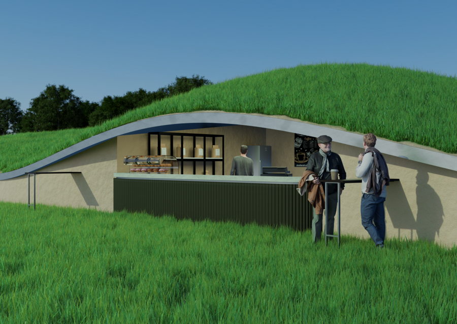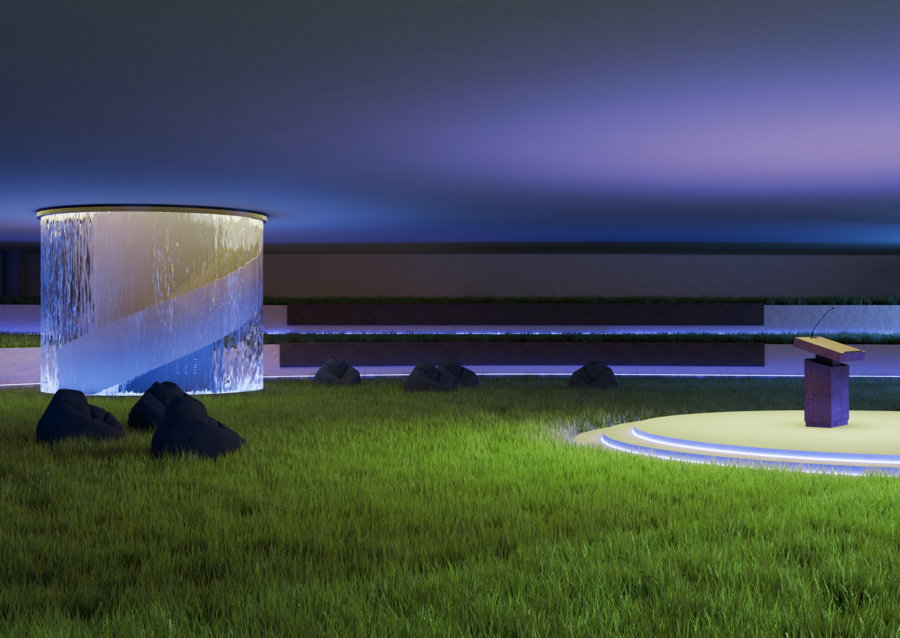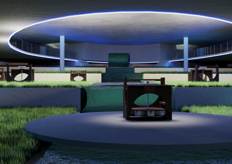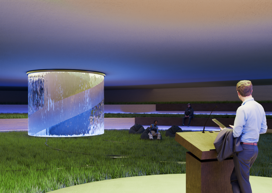 Я решила поиграть с вниманием человека к окружающему миру. Архитектура парка встроена в рельеф: человек может идти по траве и не заметить, что уже оказался на крыше здания. Ландшафт проходит сквозь архитектуру: через здания проходят ручьи, по крышам текут реки.