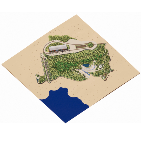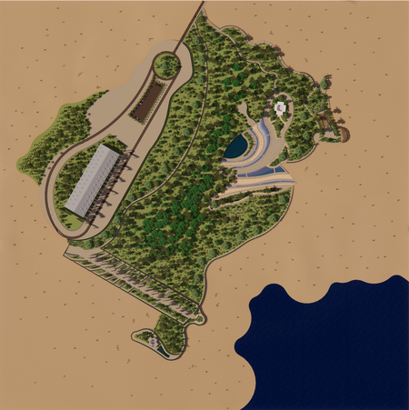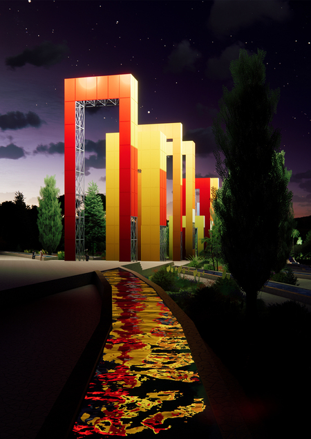 Проект посвящен созданию пространства вокруг архитектурного фасада при выставке «Цветовые поля». Основной концепцией парка было создание «оазиса в пустыне». Для достижения подобного эффекта были сделаны большие зеленые массивы, создающие ощущение тропического леса, вокруг которого безжизненная пустыня.