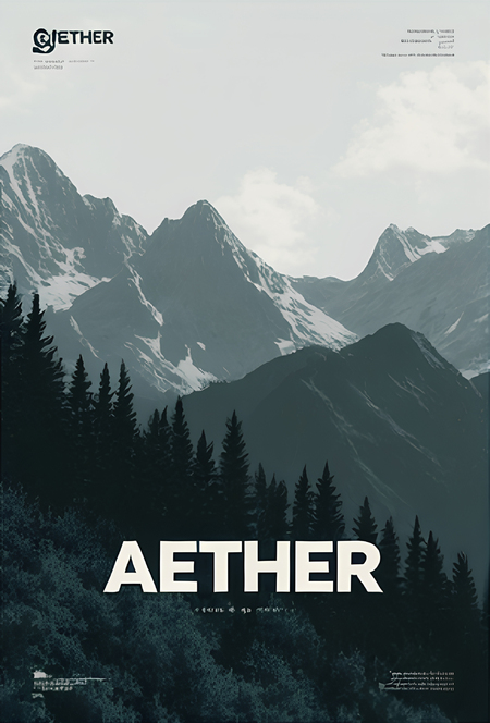 Krea/Promt: Create a three series of travel posters for «AETHER» brand maintaining the established style: Color palette: #203Е4А (deep ocean blue) #E8ECD3 (sand cream) #094D50 (forest teal) #B1BDA5 (mountain sage) #14181B (deep slate) Key elements: Central placement of «AETHER» logo in Glendale Light font. Flowing abstract lines suggesting wind and movement. Minimalist mountain and wave silhouettes. Dynamic diagonal composition. Style: Modern kinetic typography combined with organic natural elements, luxury travel aesthetic with sense of motion and sophistication. Add brief inspirational taglines in clean typography hierarchy.
