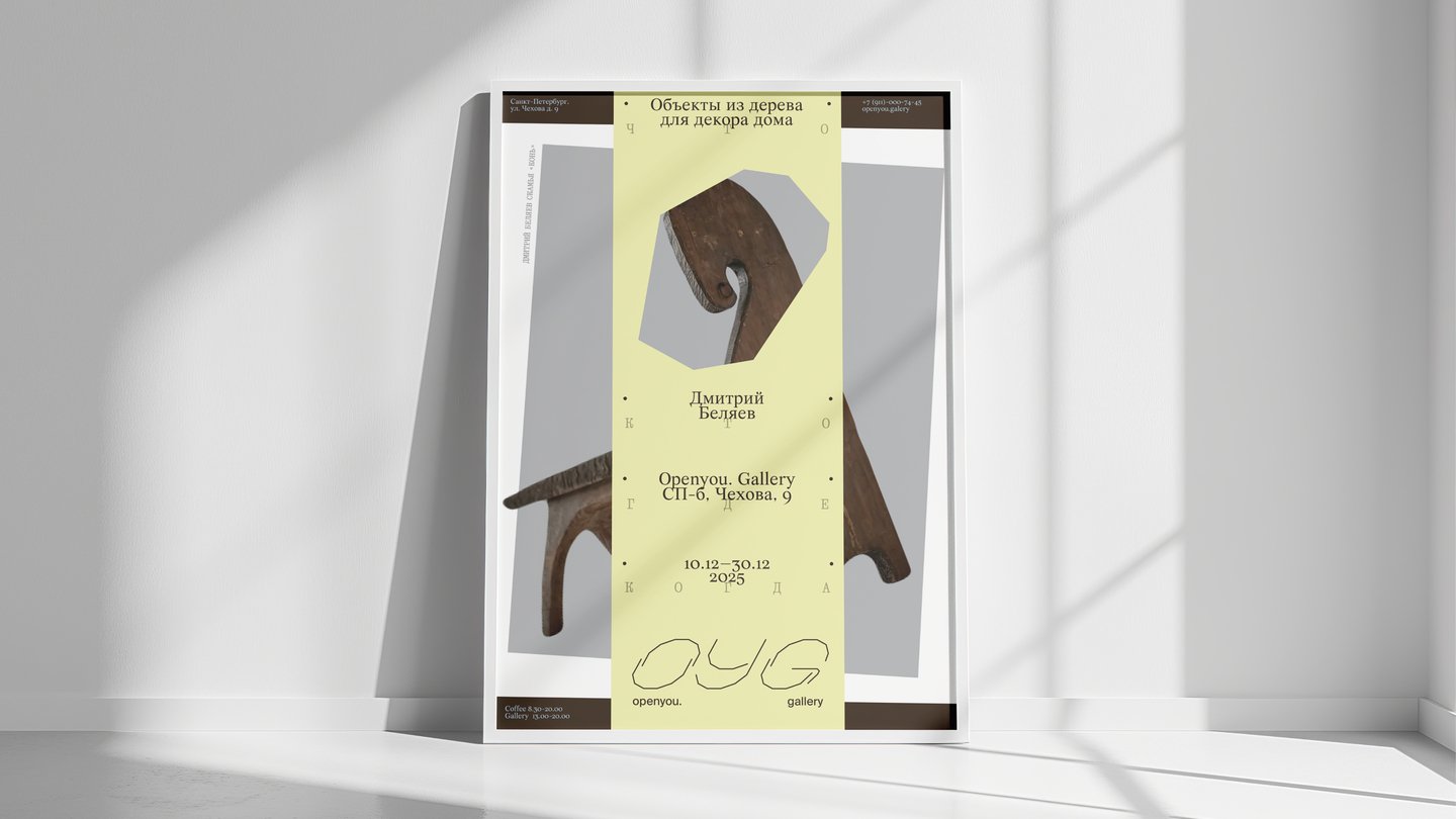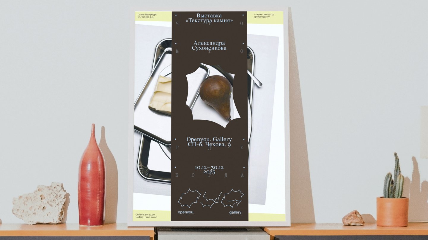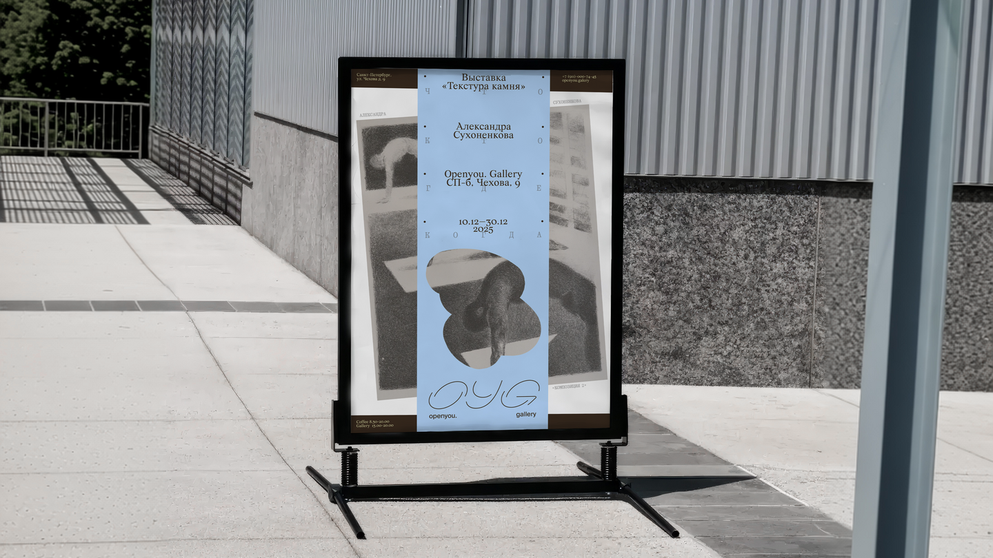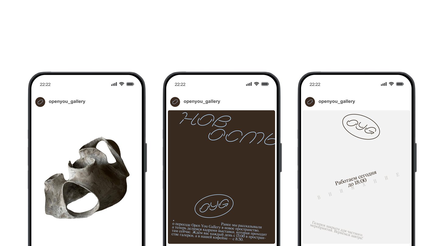 Айдентика петербургской галереи современного искусства Openyou.Gallery. Особенность галереи — в синтезе арт-площадки, концепт-стора и кофейни, делающем Openyou городским пространством нового формата. В основе фирменного стиля — кастомный шрифт, ассоциирующийся со слом привычного фокуса, многослойности и маски, сквозь которых мы можем смотреть на мир по-новому, открывая свою жизнь искусством.