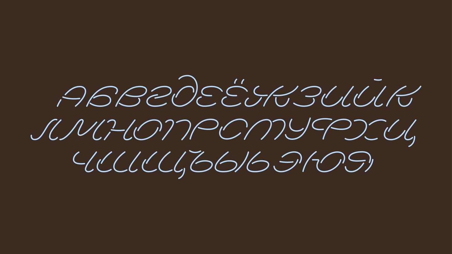 Кастомный шрифт несёт рукописный, игривый характер. Разорванные штрихи наследуют графике логотипа, сохраняя эффект смещения оптики.
