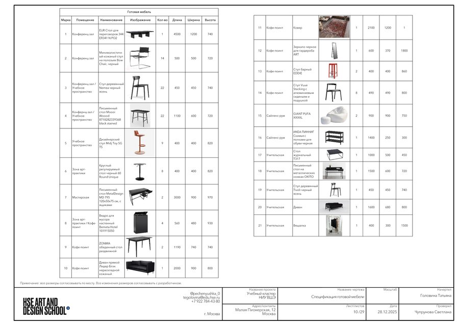 Альбом чертежей дизайн-проекта учебного кластера НИУ ВШЭ
