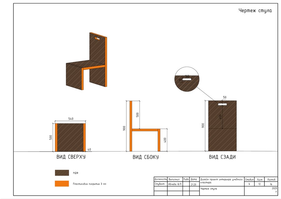 Учебный кластер оснащен эргономичной мебелью для повышения комфорта учеников и преподавателей.