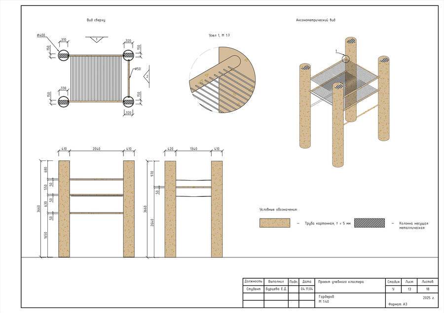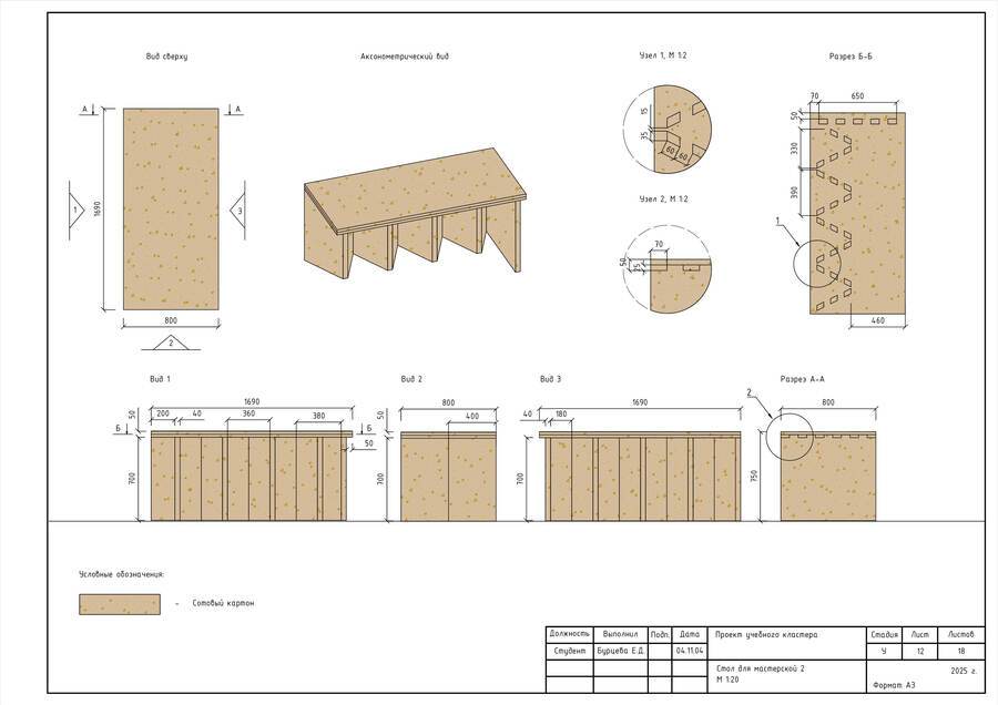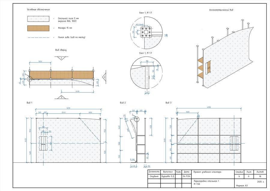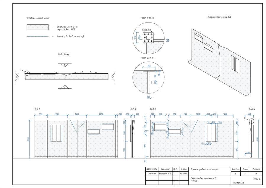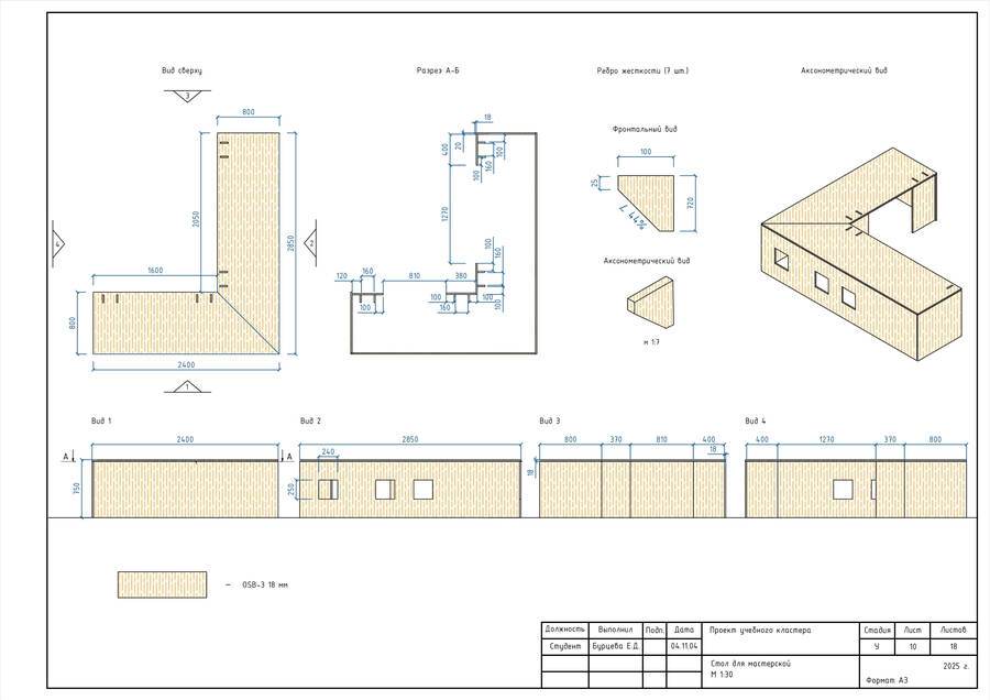 Для меня было принципиально разобрать все конструктивно сложные узлы и исключить неоднозначность при реализации. Поэтому каждая перегородка и каждый предмет мебели детально проработаны: показаны габариты, связи элементов, узлы и логика сборки, что позволяет воспринимать решения как инженерно завершённые, а не эскизные.