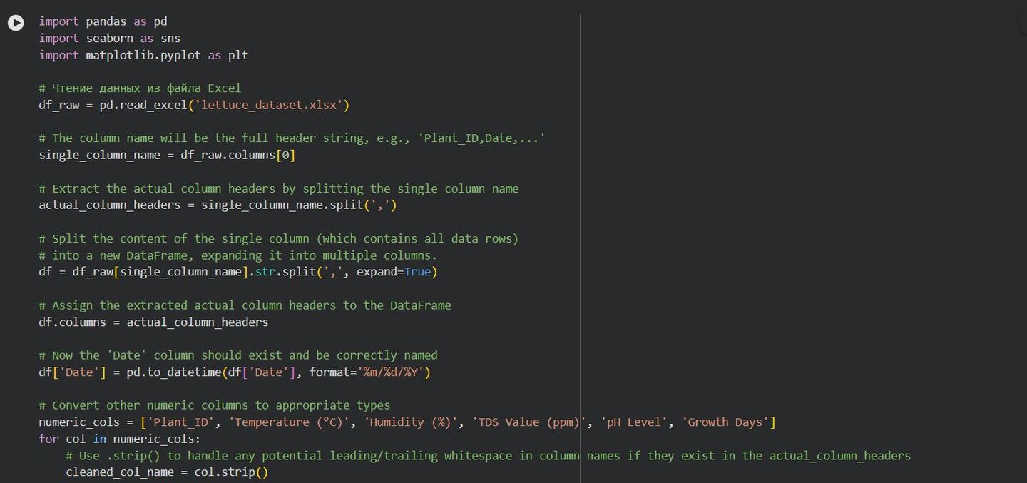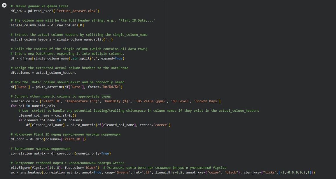 Меня привлёк этот набор данных, т. к. латук — популярное растение, широко используемое в кулинарии. Оно также часто добавляется в качестве дополнительного ингредиента в моих любимых блюдах. Было интересно проанализировать, какие факторы влияют на эффективность роста этой культуры.